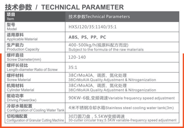 高速高效塑料混色擠出造粒機(jī)組是專(zhuān)用于工程塑料(ABS、PS、PP、PC)混色擠出造粒的機(jī)組,該機(jī)組采用多項(xiàng)先進(jìn)技術(shù)和配置,使該機(jī)能適用于工程塑料高速度高效的混合、塑化、排氣,使物料著色均勻、表面光亮、顆粒密實(shí)、產(chǎn)量高(中120mm機(jī)型產(chǎn)量高達(dá)450~500公斤/小時(shí))。