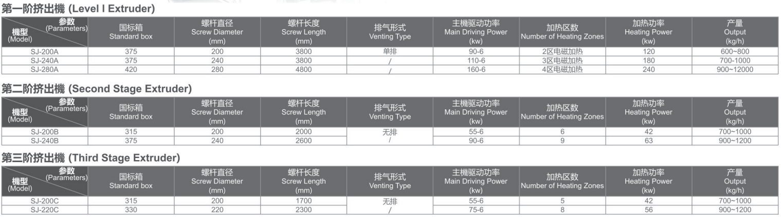本公司生產(chǎn)的SJ系列水料擠出造粒機(jī)組,適用于破碎清洗薄膜(PE,PP)的擠出造粒,本機(jī)組第一階擠出機(jī)采用排氣設(shè)計(jì),具有排氣和壓水排水功能,使造出來的顆粒更結(jié)實(shí)、光滑、純凈。